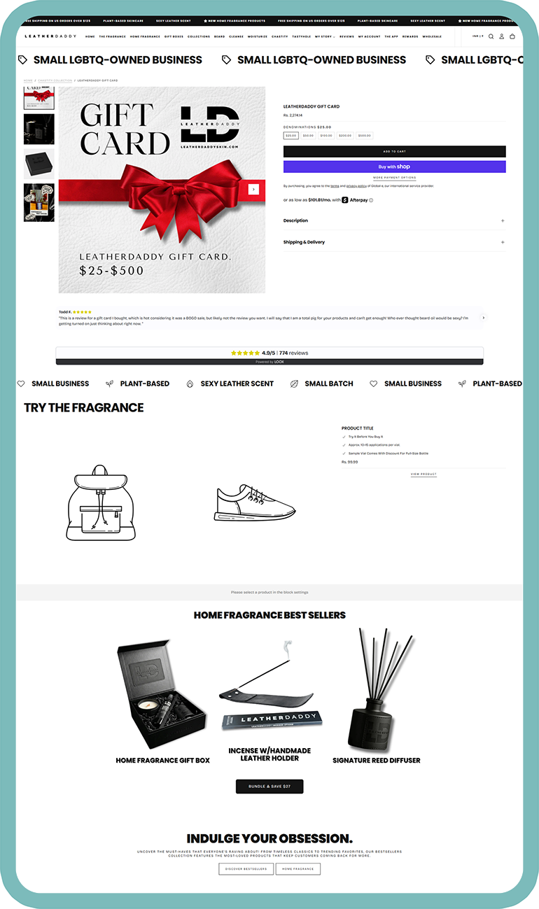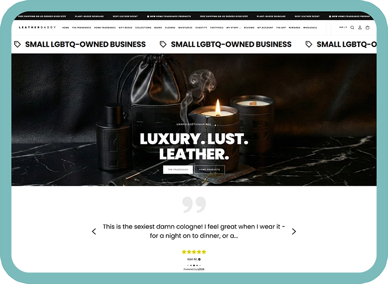 LeatherDaddy Skin Co. was founded by Chris Wright-Garcia, a non-binary creator from Albuquerque, New Mexico, during the pandemic after losing their job as a waiter. Inspired by the scent of leather, scotch, and vanilla, Chris developed unique, bold fragrances reflecting self-expression and kink culture. The brand promotes inclusivity, confidence, and plant-based skincare while celebrating the BDSM community. With a playful yet empowering approach, LeatherDaddy donates 10% of profits to charities supporting equality and self-acceptance.
